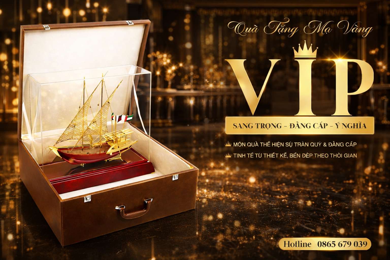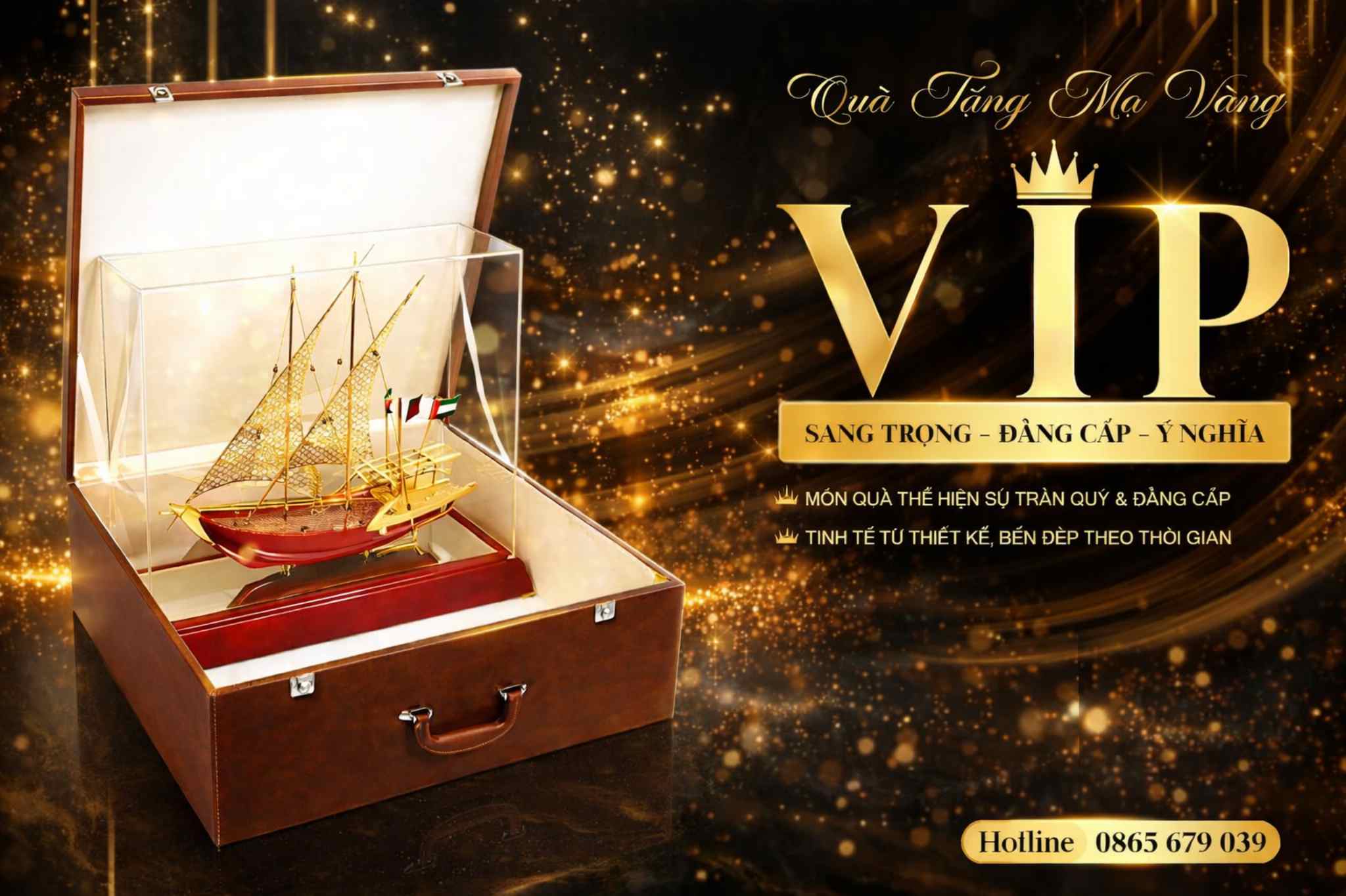 Bên cạnh đó, quà tặng mạ vàng còn có ý nghĩa phong thủy. Ví dụ, thuyền buồm mạ vàng tượng trưng cho sự thuận lợi và thành công trong kinh doanh; cây tài lộc mạ vàng đem đến may mắn và phú quý; chữ Phúc mạ vàng gửi gắm lời chúc viên mãn, hạnh phúc. Những sản phẩm này thường được lựa chọn trong các dịp khai trương, tân gia hay lễ kỷ niệm.