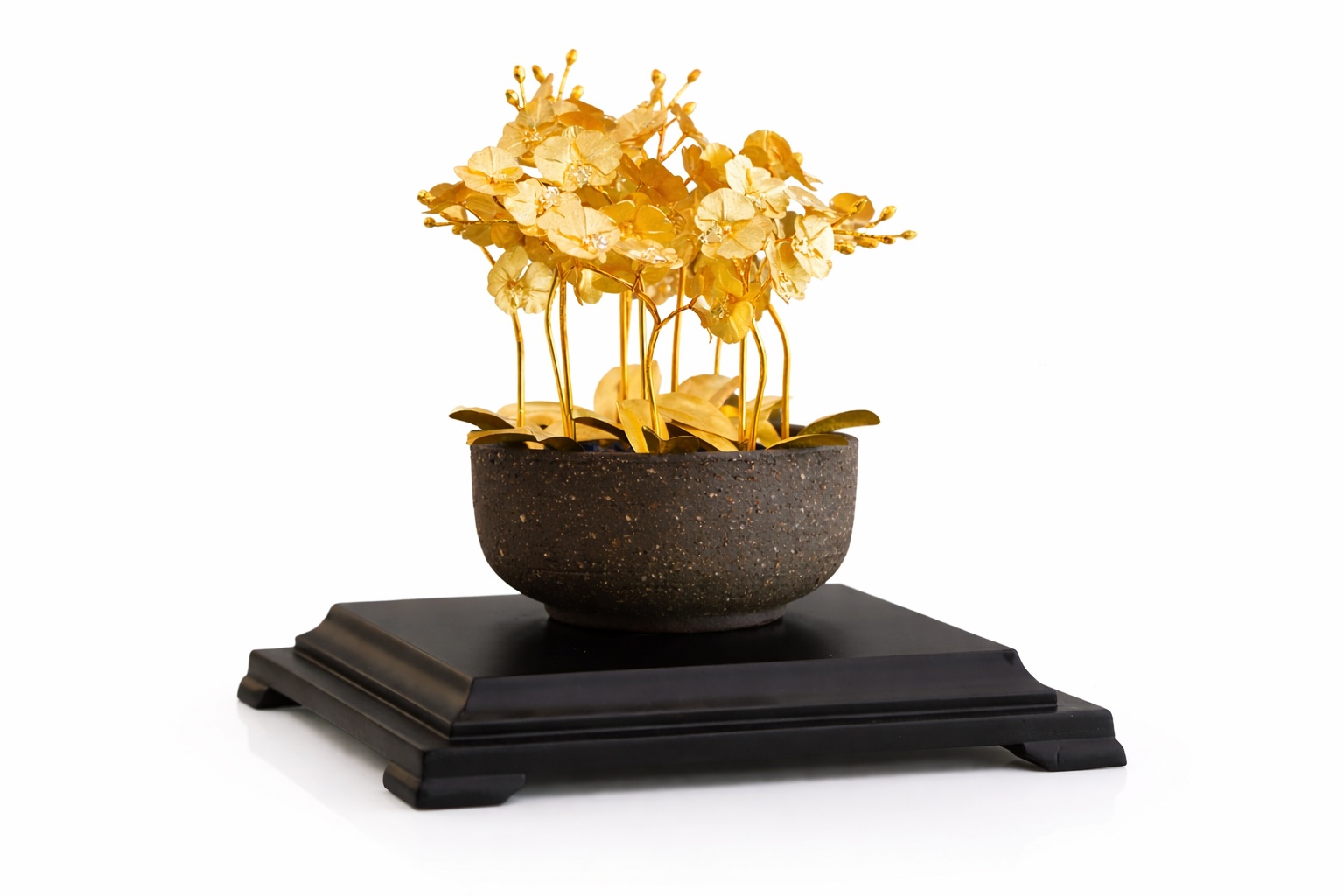 Chậu lan hồ điệp mạ vàng là biểu tượng của vẻ đẹp sang trọng, phú quý và may mắn. Được chế tác tinh xảo với lớp mạ vàng cao cấp, sản phẩm mang ý nghĩa phong thuỷ tốt lành, tượng trưng cho tài lộc, thịnh vượng và thường được chọn làm quà tặng cao cấp hoặc vật phẩm trang trí trang nhã.