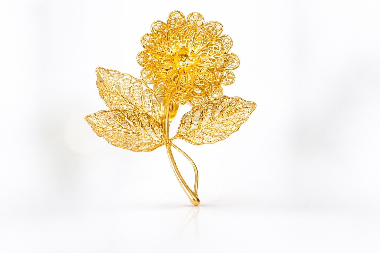 Hoa cài áo mạ vàng là phụ kiện cao cấp được chế tác tinh xảo, nổi bật với vẻ đẹp sang trọng và thanh lịch. Sản phẩm không chỉ tôn lên phong cách người đeo mà còn mang ý nghĩa may mắn, trân quý, thường được lựa chọn làm quà tặng tinh tế và ý nghĩa.