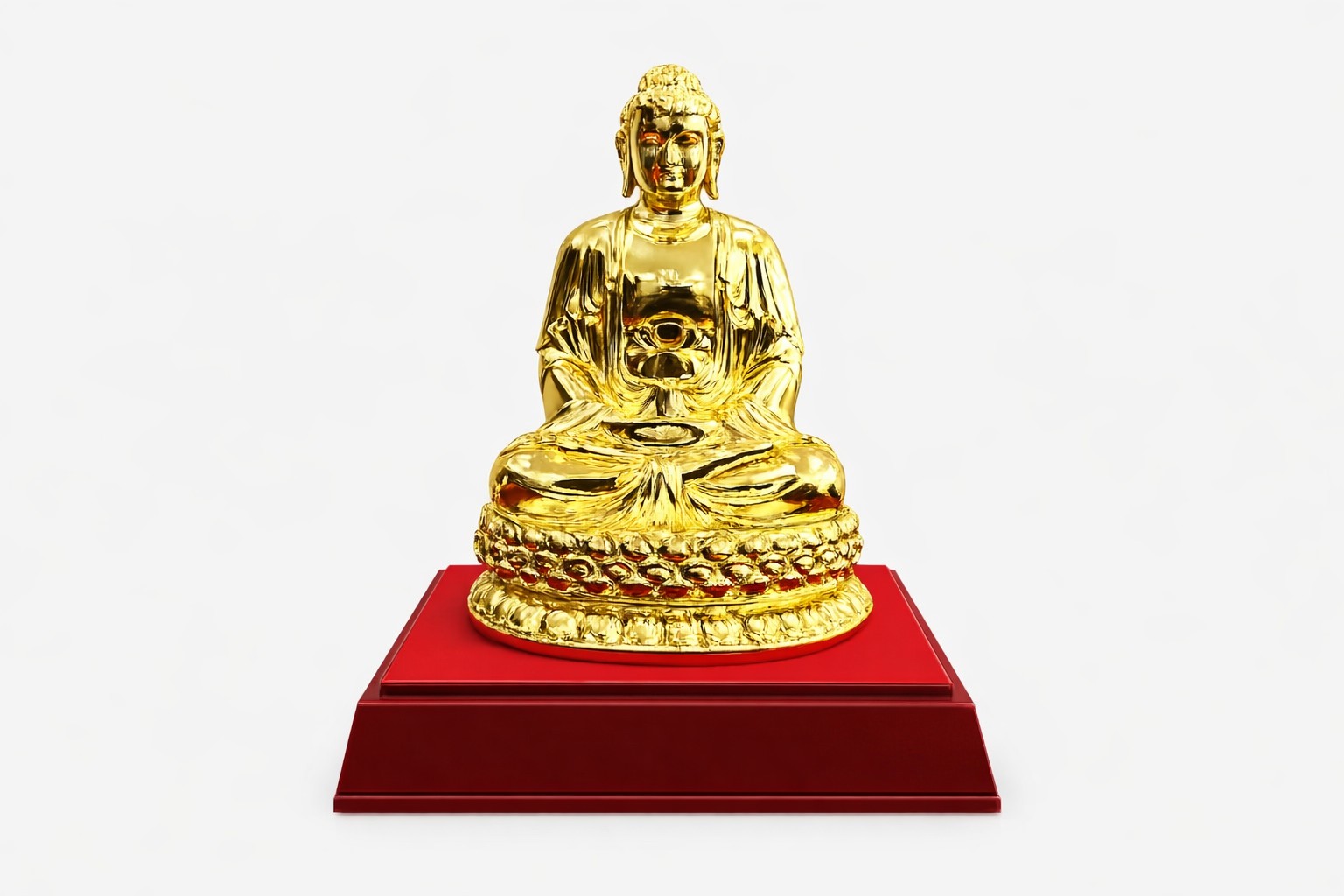 Tượng Phật bằng đồng mạ vàng được chế tác tinh xảo, toát lên vẻ trang nghiêm và thanh tịnh. Sản phẩm mang ý nghĩa tâm linh sâu sắc, biểu trưng cho bình an, trí tuệ và may mắn, thường được thờ cúng hoặc trưng bày để cầu an và hướng thiện.
