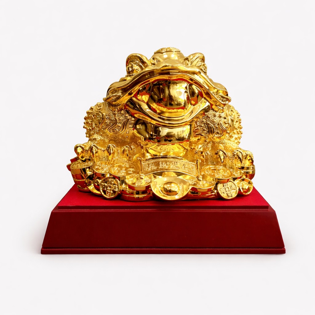 Cóc ngậm tiền mạ vàng là linh vật phong thuỷ tượng trưng cho tài lộc và may mắn trong kinh doanh. Được chế tác tinh xảo với lớp mạ vàng sang trọng, sản phẩm thường được trưng bày để chiêu tài, giữ lộc và mang ý nghĩa thịnh vượng bền lâu.