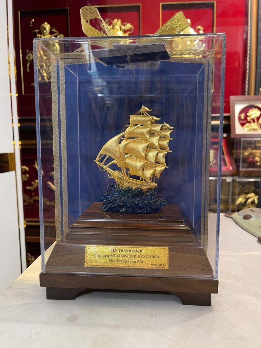 Theo quan niệm Á Đông, thuyền buồm là biểu tượng của hành trình thuận lợi, may mắn và thành công. Khi được mạ vàng, giá trị của món quà càng tăng thêm, thể hiện lời chúc phú quý, hanh thông và vững bước trên con đường mới.