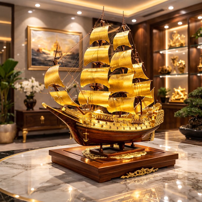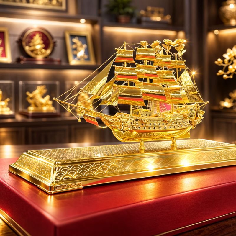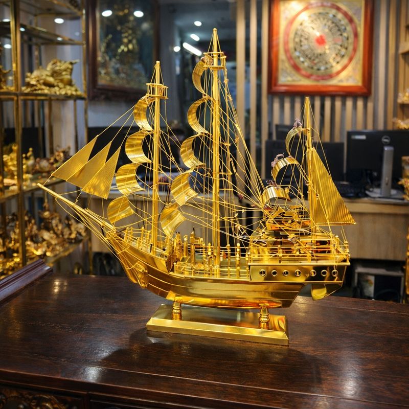 Cuối cùng, để giữ cho mô hình thuyền mạ vàng luôn phát huy giá trị phong thủy tốt, người trưng bày nên thường xuyên lau chùi, vệ sinh nhẹ nhàng để sản phẩm luôn sáng đẹp. Một mô hình thuyền buồm mạ vàng được bài trí đúng cách, sạch sẽ và hài hòa sẽ không chỉ nâng tầm không gian mà còn góp phần mang đến sự hanh thông, thuận lợi và thành công bền vững cho gia chủ hoặc doanh nghiệp.
