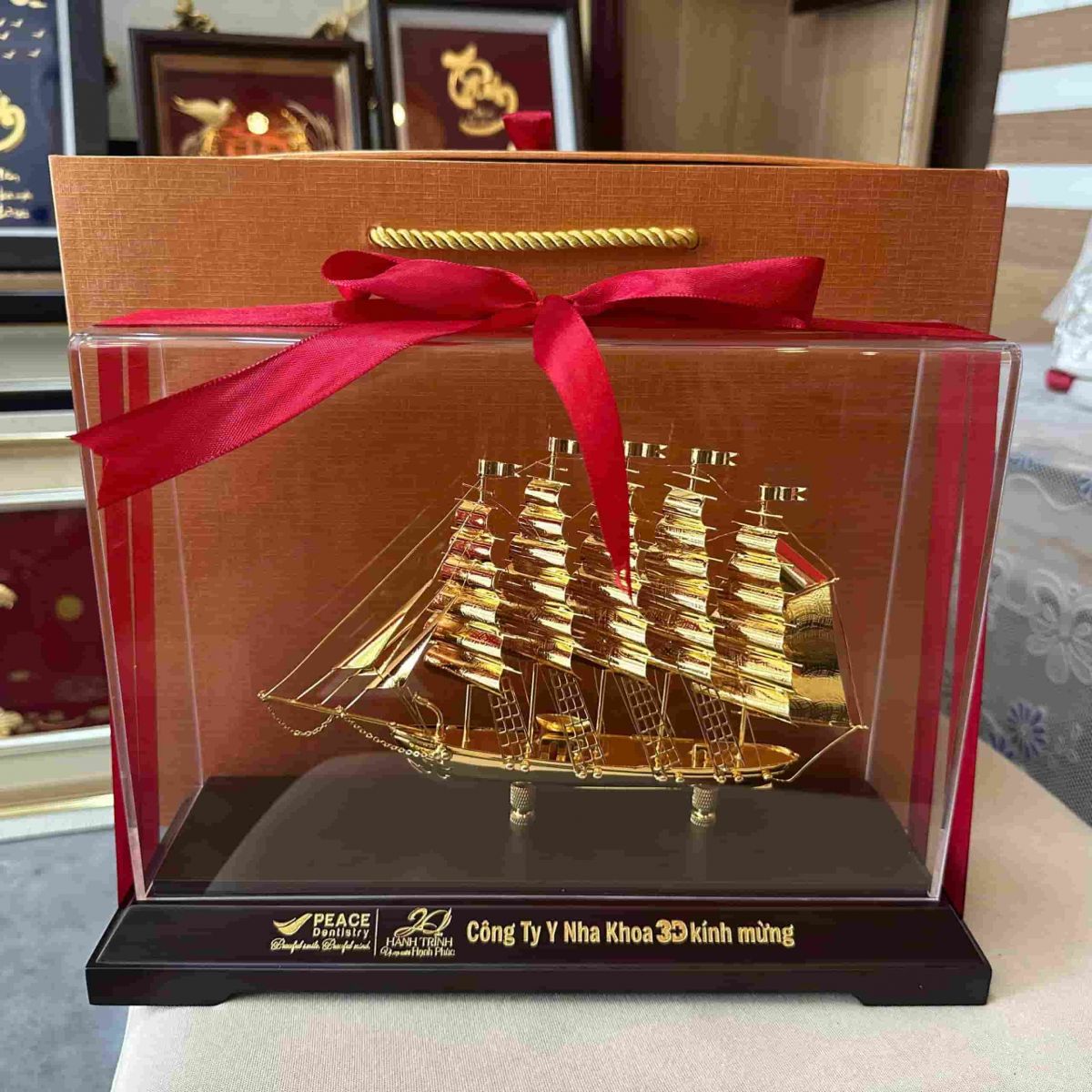Trong môi trường doanh nghiệp, mô hình thuyền buồm mạ vàng còn được sử dụng làm quà tặng kỷ niệm thành lập công ty, quà tặng cuối năm hoặc quà vinh danh cá nhân, tập thể xuất sắc. Hình ảnh con thuyền không chỉ đại diện cho sự phát triển của doanh nghiệp mà còn mang ý nghĩa tập thể đồng lòng, cùng nhau vượt qua sóng gió để đạt được mục tiêu chung. Khi được trưng bày tại văn phòng hoặc nhà riêng, món quà này trở thành kỷ vật nhắc nhớ về những chặng đường đã qua và động lực cho những bước tiến tiếp theo.